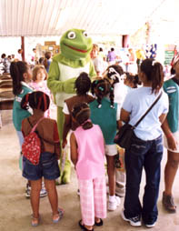 Simple Simon cleverly connected to other community conservation programs too, building a tremendous amount of goodwill (and free advertising!) through support of efforts like the annual Baton Rouge Earth Day celebration. The Simons had this to say, "We were proud that we were able to represent the automotive industries efforts to do their part through the use of the Eco-Auto program. Bog Frog was a smashing success as he walked in the parades, waving and shaking hands with the children!" |